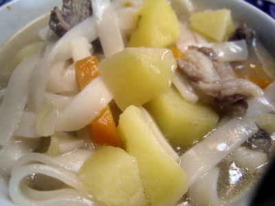 ごはんは、羊肉とじゃがいも、にんじんを具に、バターで炊き込んだ感じ。