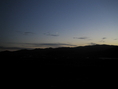 山があるので地平線は見えない。
